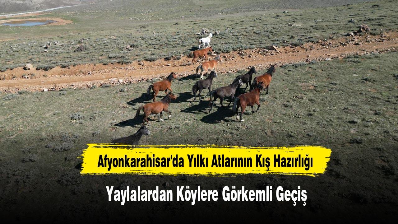 Afyonkarahisar’da sonbahar mevsiminin gelmesiyle yiyecek arayışına giren ve ürkeklikleri ile bilinen yılkı atları yaylalardan köylere inmeye başladı.