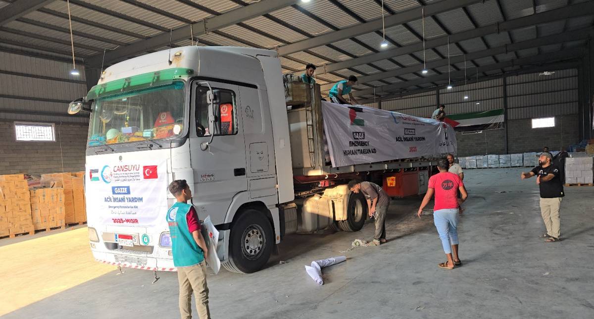 Cansuyu Yardımlaşma ve Dayanışma Derneği, Mısır’da tamamlanan çalışmaların ardından 300 ton un, 100 ton gıda ve 1.000 adet hijyen kitini taşıyan toplam 14 tırlık yardım konvoyunu Gazze’ye gönderdi. Afyonkarahisar İl Temsilcisi Mehmet Demir, “Canımız bedenimizde olduğu sürece Gazze’ye yardım etmeye devam edeceğiz” dedi.
