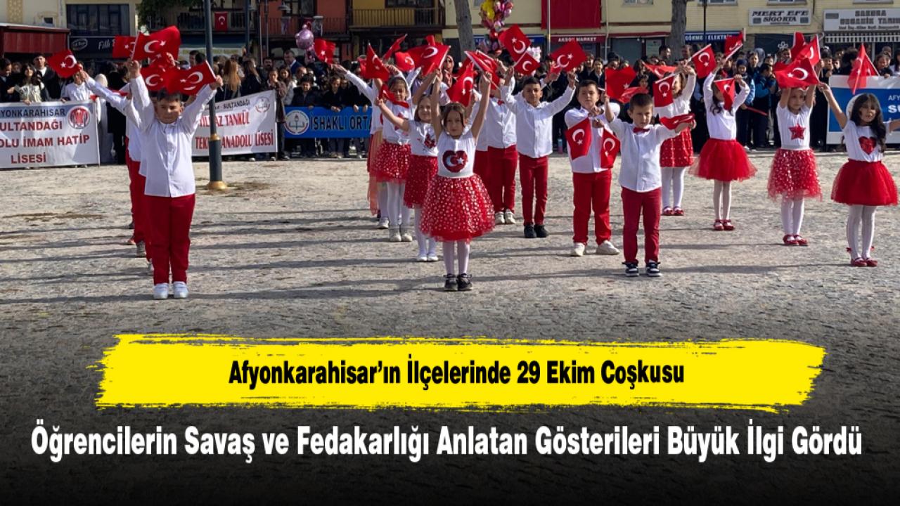 Bolvadin, Şuhut, Emirdağ ve Sultandağı ilçelerinde de kutlama törenlerinde coşku tavan yaptı. Törenler dolayısıyla öğrenciler tarafından hazırlanan etkinlikler ayakta alkışlandı.