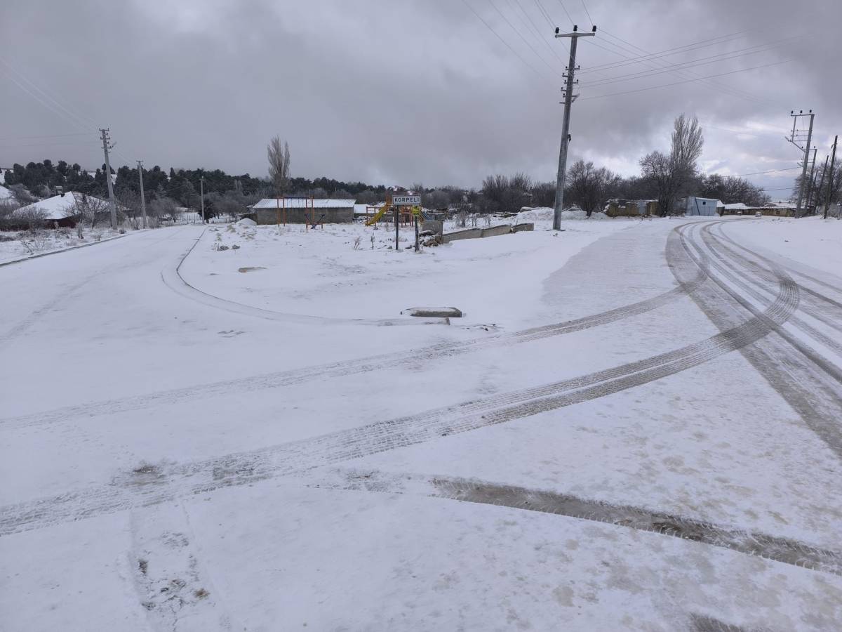 Afyonkarahisar'da rakımı yüksek bölgelerde kar yağışı etkili olurken, ekipler köy yollarını açık tutmak için yoğun mesai harcıyor.