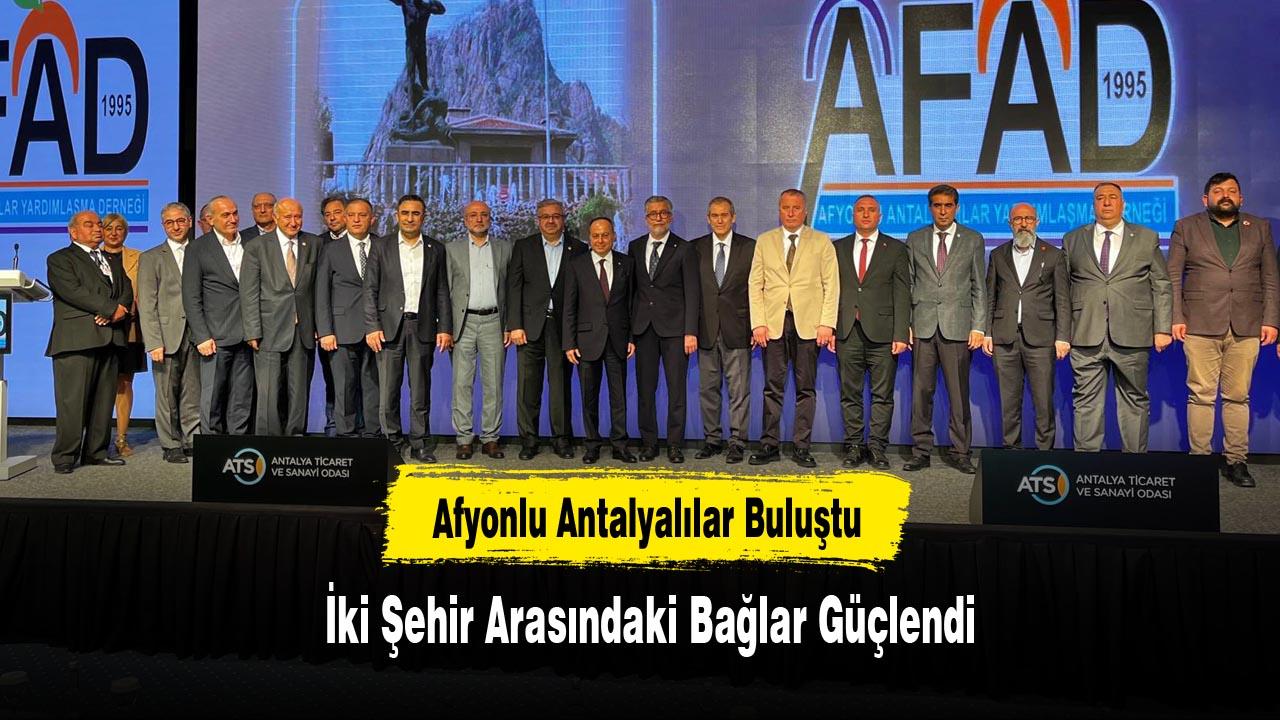 Afyonkarahisar ve Antalya’da yaşayan Afyonkarahisarlıları bir araya getiren toplantı, samimi bir ortamda gerçekleşti. Buluşmada, hemşehriler hasret gidererek, iki şehir arasındaki dayanışmanın güçlenmesi yönünde görüş alışverişinde bulundu.