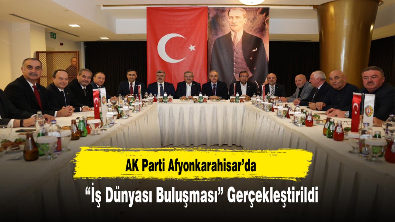 AK Parti Afyonkarahisar İl Başkanlığı tarafından düzenlenen “İş Dünyası Buluşması” programında, Afyonkarahisar iş dünyasının beklenti, öneri ve hedefleri ele alınırken; kentin üretim gücü, yatırım potansiyeli ve istihdam kapasitesinin artırılmasına yönelik fikir alışverişinde bulunuldu.
