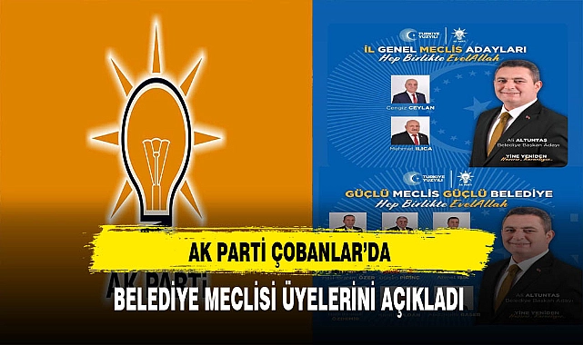 AK Parti ilçelerde Belediye Meclisi Üyelerini açıklamaya devam ediyor. AK Parti Çobanlar İlçesinde partisinin Belediye Meclis Üyelerini açıkladı. Açıklama İlçe Başkanı Murat Yeşilden geldi. Yeşil açıklamasında; ‘’ Kadim ilçemiz Çobanlarımız’ın Türkiye Yüzyılı’nda imarı ve ihyası için birlikte çalışacağımız AK Parti Çobanlar Belediye Meclis Üyesi Adaylarımız ve İl Genel Meclis Adaylarımız İlçemize Hayırlı Olsun.’’ Dedi.