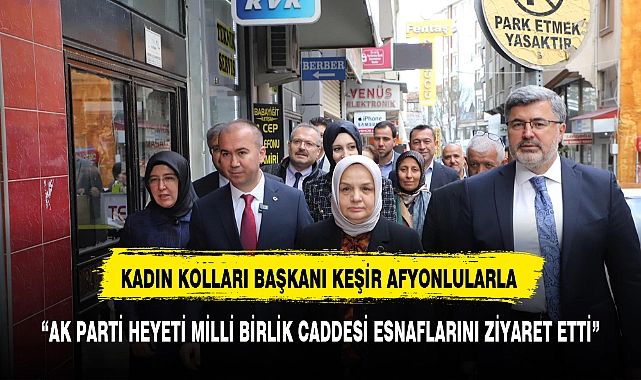 AK PARTİ HEYETİ MİLLİ BİRLİK CADDESİ ESNAFLARINI ZİYARET ETTİ AK Parti Kadın Kolları Başkanı ve aynı zamanda Düzce Milletvekili Ayşe Keşir ,Afyonkarahisar Milletvekilleri Ali Özkaya ve İbrahim Yurdunuseven, Belediye Başkan Adayı Hüseyin Ceylan Uluçay, İl Başkanı Hüseyin Menteş ve AK Parti teşkilatıyla birlikte Milli Birlik Caddesi esnaflarını ziyaret etti.