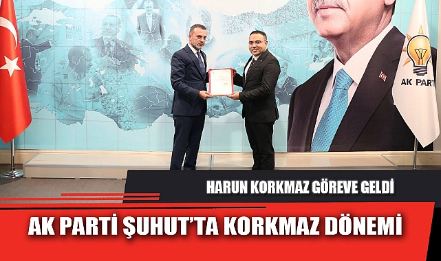 Adalet ve Kalkınma Partisi Şuhut İlçe Başkanı İnş. Müh. Ali Diren'in görevinden affını istemesinin ardından vekaleten ilçe başkanlığı görevini yürüten yönetim kurulu üyesi Harun Korkmaz AK Parti Genel Merkezi tarafından asaleten atandı.