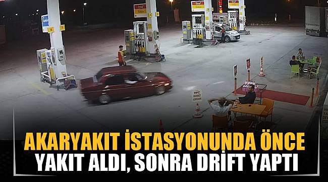 AKARYAKIT İSTASYONUNDA ÖNCE YAKIT ALDI, SONRA DRİFT YAPTI