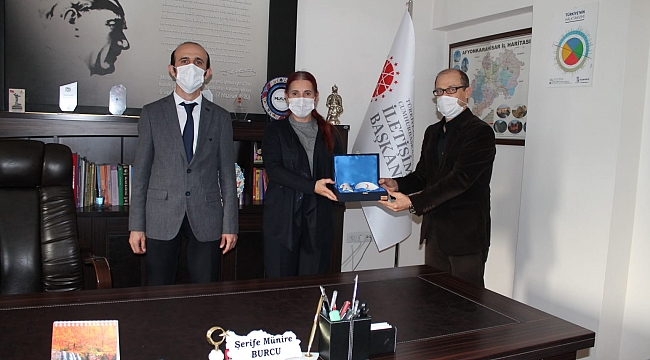 Afyonkarahisar Kızılay Kan Bağış Merkezi Müdürü Kubilay Akman, Cumhurbaşkanlığı İletişim Başkanlığı Afyonkarahisar Bölge Müdürü Ş. Münire Burcu’yu ziyaret etti.