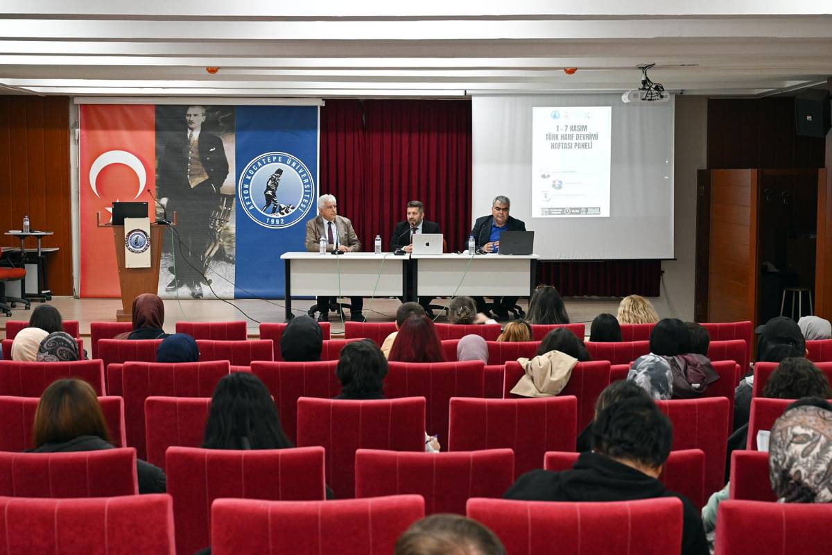 Afyon Kocatepe Üniversitesi (AKÜ) Fen Edebiyat Fakültesi’nde, 1-7 Kasım Türk Harf Devrimi Haftası dolayısıyla düzenlenen panelde, Türk dilinin tarihsel yolculuğu, alfabe değişimleri ve Türk dünyasında yürütülen ortak dil politikaları ele alındı. Erdal Akar Konferans Salonu’nda gerçekleştirilen programa akademisyenler, idari personel ve öğrenciler katıldı.