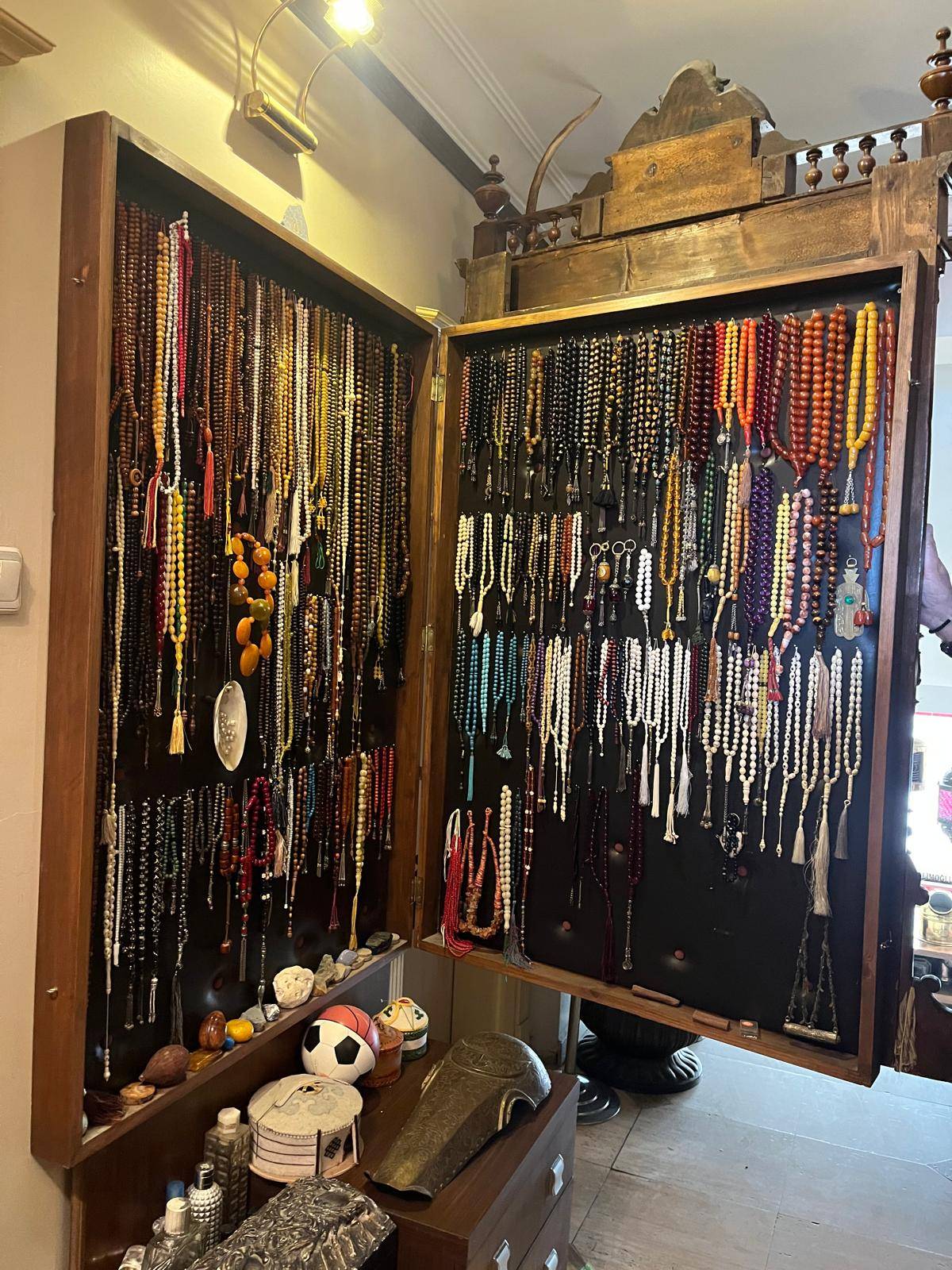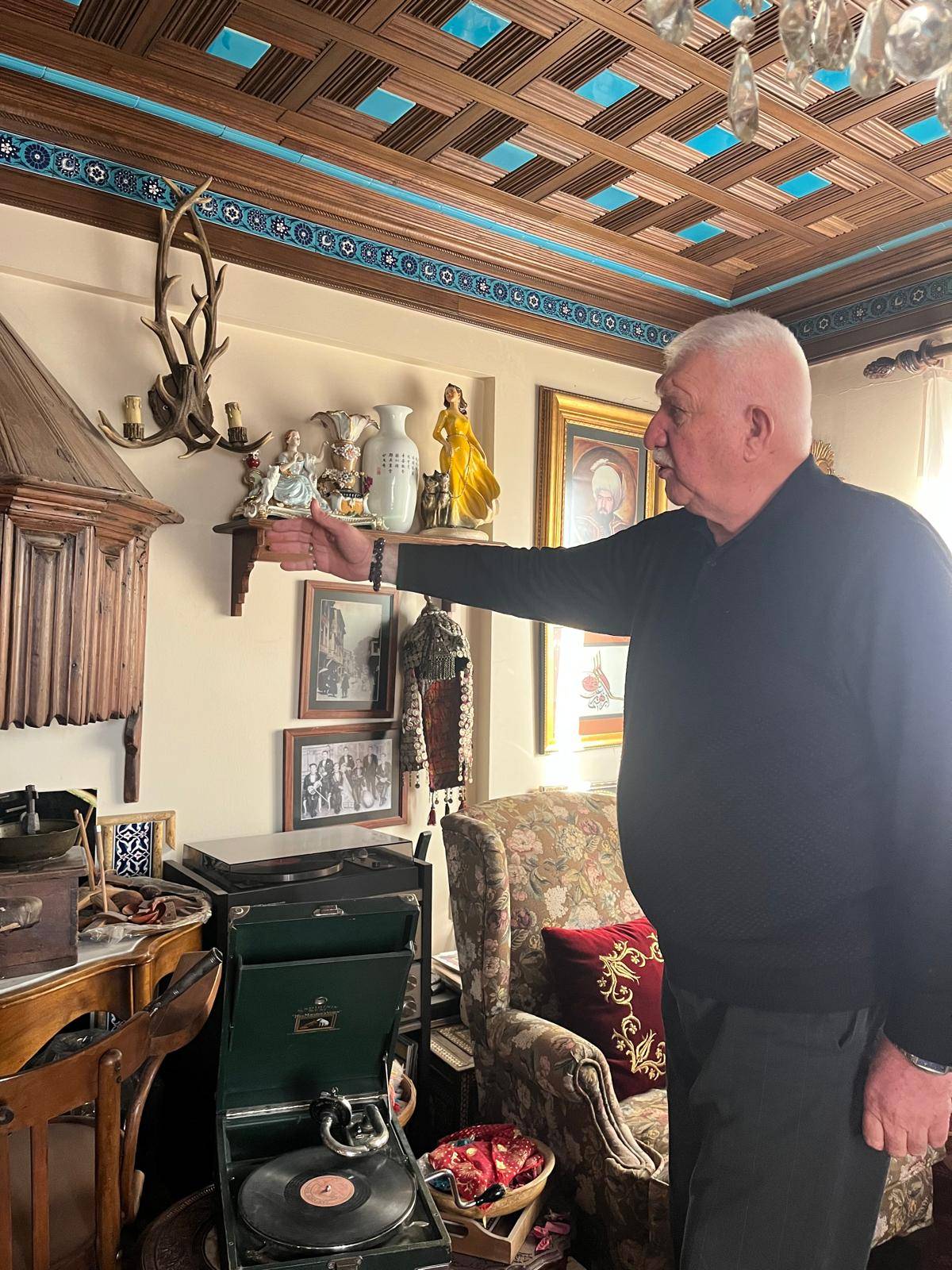 İbrahim Alimoğlu, iş yerinin koridorlarında, duvarlarında ve merdivenlerinde sergilenen eşyaların sayısını dahi bilmediğini belirterek, burada adeta bir müze atmosferi oluşturduğunu ifade ederek, "Yüzlerce, binlerce eşya var. Yemekhane bölümünde resimler ve çerçeveler sergileniyor. 5 binden fazla kitabın olduğu kütüphanem var. Burada el yazması Kur'an-ı Kerim'ler, Osmanlı dönemine ait çok küçük bir sancak Kur'an-ı Kerim de bulunuyor. En kıymetli olanlardan biri, Abdülhamid Han döneminden bir sancak. En az yüz yıllık gramofonlar var, hepsi hala çalışıyor. Bunların yanında eskiden kullanılan aydınlatma aletleri, yüzlerce tespihten oluşan koleksiyon, dikiş makineleri, bastonlar, mobilyalar ve daha birçok ilginç eşyayı burada sergiliyorum." şeklinde konuştu.