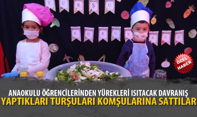 Anaokulu öğrencileri sınıfta kurdukları turşuları ailelerine mahalle komşularına sattılar. Kazandıkları para ile de yardım kuruluşlarına bağış yaptılar. Minik öğrenciler bağış yapacakları kurumu da oylama usulü ile belirlediler.