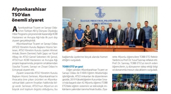 Afyonkarahisar Ticaret ve Sanayi Odası’nın faaliyetleri, Türkiye Odalar ve Borsalar Birliği’nin yayın organı TOBB Ekonomik Forum Dergisi’nde yayımlandı.