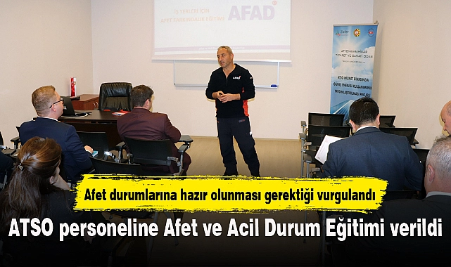 Yaklaşık iki saat süren eğitim dolayısıyla teşekkür eden ATSO Genel Sekreteri Ali Şenol, Türkiye Odalar ve Borsalar Birliği ile Afet ve Acil Durum Yönetimi Başkanlığı’nın işbirliği protokolü kapsamında sürdürülen “İşyerleri İçin Afet Farkındalık Eğitimi” çerçevesinde ATSO personelinin afetlere karşı farkındalığını artırdıklarını belirtti. Şenol, Açıkalın’a verdiği bilgiler dolayısıyla teşekkür etti.