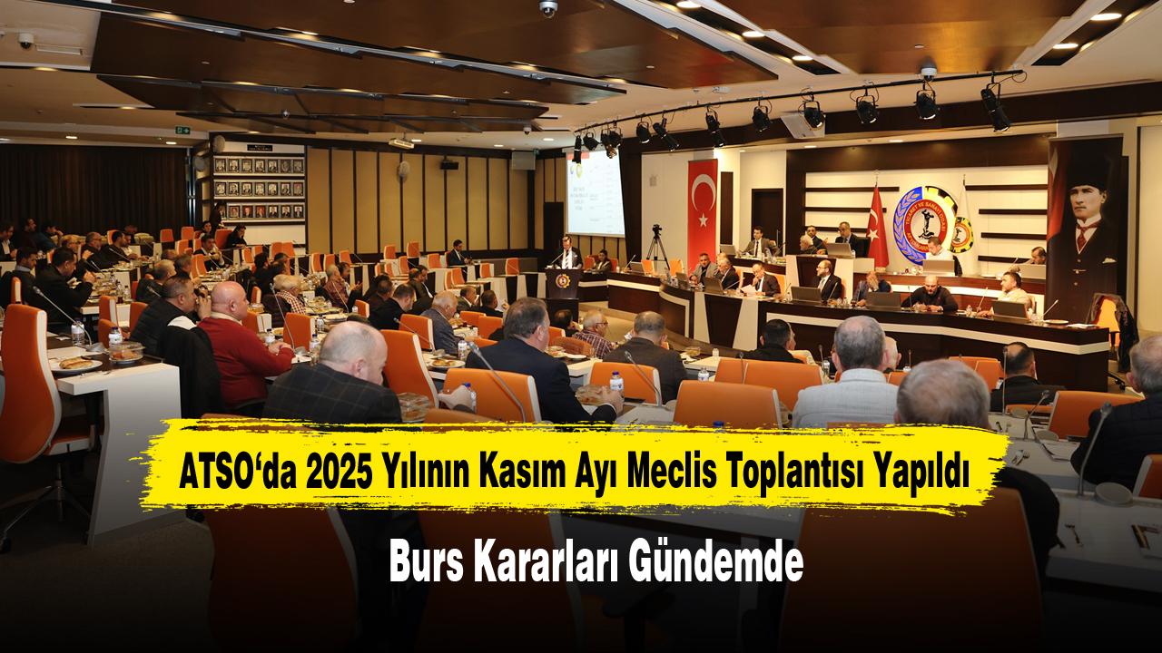 Afyonkarahisar Ticaret ve Sanayi Odası (ATSO) Meclisi'nin 2025 yılı Kasım ayı olağan toplantısı ATSO Meclis Salonu’nda gerçekleştirildi. Toplantıda milli günler anıldı, şehitler için başsağlığı dilendi ve öğrencilere verilecek burs miktarları oy birliğiyle onaylandı.