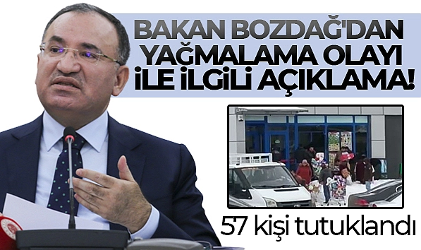 Adalet Bakanı Bekir Bozdağ deprem bölgesinde tespit edilen 75 yağmalama olayı ile ilgili 57 kişinin tutuklandığını açıkladı .