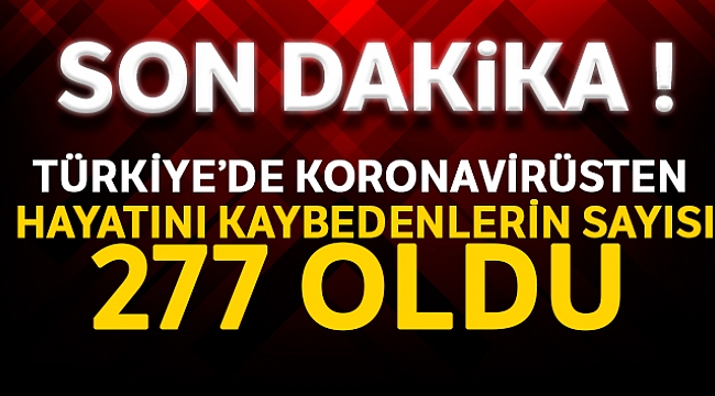 TOPLAM CAN KAYBI 277 OLDUSon 24 saatte yapılan test sayısı 14 bin 396, vaka sayısı 2 bin 148. Hayatını kaybedenlerin sayısı 63. Toplam 333 hastamız iyileşti. Toplam hayatını kaybedenlerin sayısı 277 oldu.