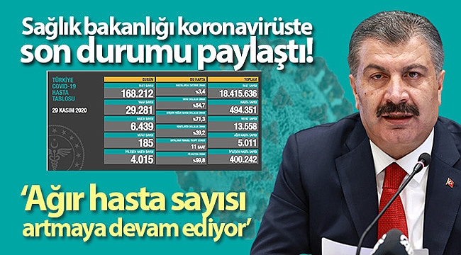 Sağlık Bakanlığı, son 24 saatte 185 kişinin korona virüsten hayatını kaybettiğini, 29 bin 281 yeni vaka sayısının olduğu açıkladı.