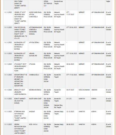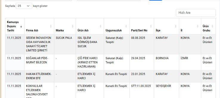 Yayımlanan listede en fazla ihlal, sucuk üretimiyle tanınan Afyonkarahisar’da görüldü. Kentte 6 firmanın ürünlerinde mekanik ayrılmış kanatlı eti, baş eti ve sakatat kalıntılarına rastlandı. Ankara’da 1, Konya’da ise 4 firmanın benzer hilelere başvurduğu belirlendi.