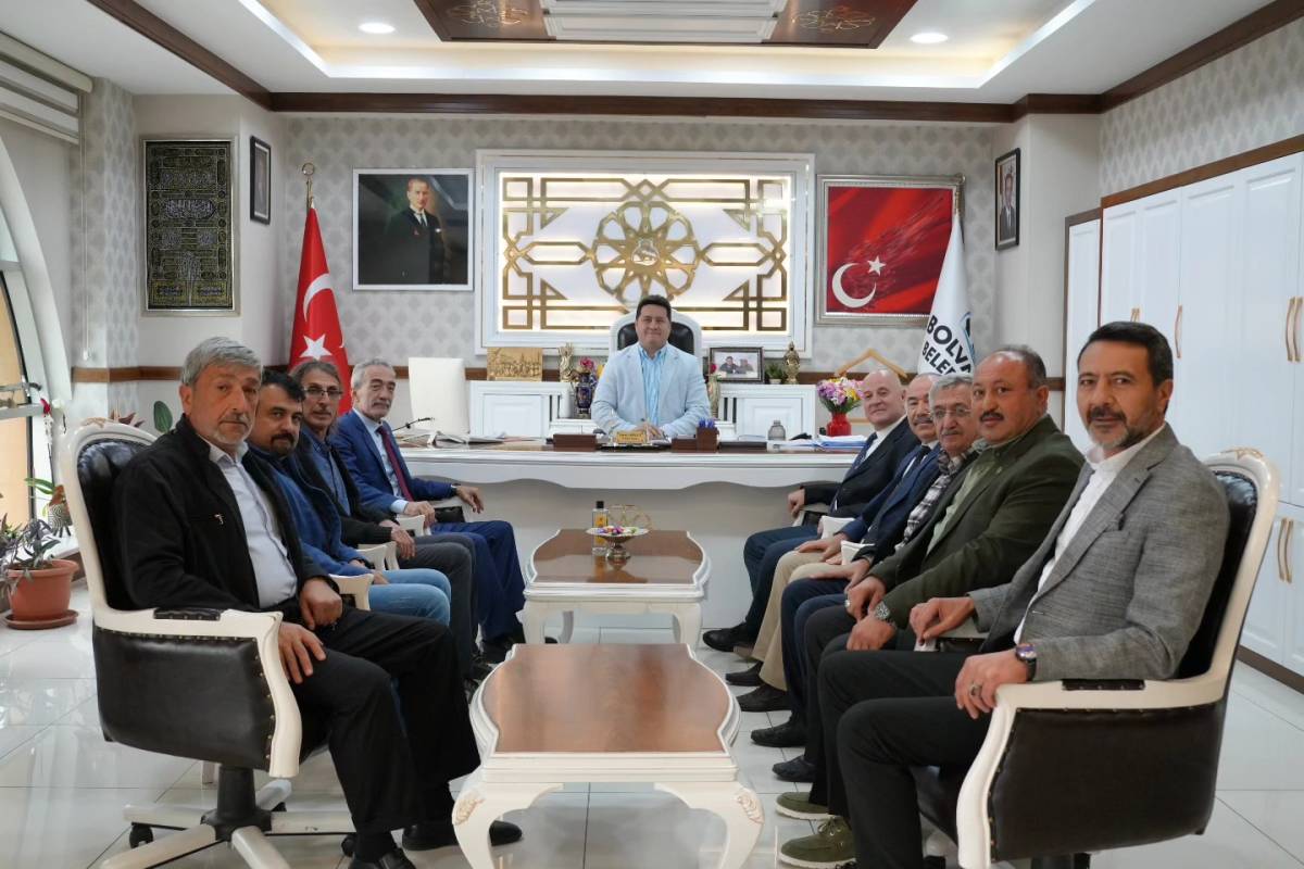 Afyonkarahisar İl Kültür ve Turizm Müdürü Yusuf Altun, Afyonkarahisar Esnaf ve Sanatkârlar Odası Başkanı Cengiz Üstün, Afyonkarahisar Madeni Sanatkârlar Esnaf Odası Başkanı Mustafa Yılmazaslan, Afyonkarahisar Giyim Eşyası İmalat ve Satıcılar Esnaf ve Sanatkârlar Odası Başkanı Hüseyin Karnıbüyük, Bolvadin Esnaf ve Sanatkârlar Odası Başkanı İbrahim Çürük ve Bolvadin Şoförler ve Otomobilciler Odası Başkanı Hidayet Sarıtaş, Belediye Başkanı Derviş Aynacı’yı makamında ziyaret etti. Ziyarette İl Kültür ve Turizm Müdür Yardımcısı Cemil Kaynak, Arkeolog Özdemir Koçak ve Harita Mühendisi Ömür Esen de yer aldı.