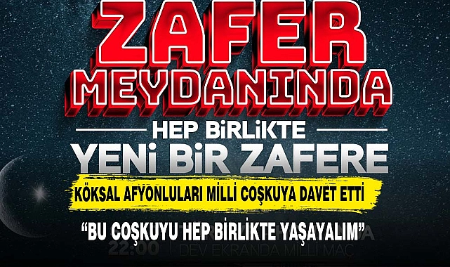 Köksal Yaptığı paylaşımda, “Karşılaşma öncesinde saat 21.20'de Zafer Bandosu, Afyonlulara eşsiz eserleri seslendirirken Köksal, "Gelin, bizim çocukların zaferine hep birlikte tanıklık edelim! Çeyrek final heyecanı için Zafer Meydanı'nda buluşalım!" sözleriyle Afyonluları milli coşkuya ortak olmaya çağırdı.>> EVREN ATCI
