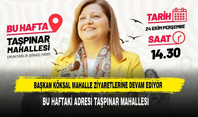 Her hafta farklı bir mahallede düzenlenen "Mahalle Buluşmaları" kapsamında vatandaşlar, taleplerini ve belediyeden beklentilerini doğrudan Başkan Köksal’a iletme fırsatı buluyor. Bu haftaki buluşma, 24 Ekim Perşembe (yarın) saat 14.30’da Taşpınar Mahallesi, Muhtarlık Binası yanında gerçekleştirilecek.