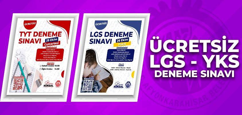 Afyonkarahisar Belediye Başkanı Burcu Köksal liderliğinde, Afyonkarahisar Belediyesi olarak eğitime ve gençlerin geleceğine olan desteğini bir kez daha göstererek, LGS ve YKS'ye hazırlanan tüm öğrenciler için ücretsiz ve kapsamlı deneme sınavları düzenlenecek.