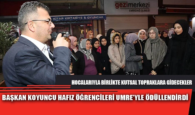 Dualarla yolcu edilen hafızlara hayırlı yolculuklar dileyen Başkan Koyuncu: “Öncelikle hafızlık belgesi alan kızlarımızı tebrik ediyorum. Hafız kızlarımızı ve hocalarını ülkemize hayır dualarını eksik etmemeleri temennisiyle Umre ziyareti için Kadim Şehrimiz Emirdağ'dan kutsal topraklara uğurladık. Hafızlarımıza hayırlı yolculuklar diliyor, manevi huzurun derinden yaşandığı kutsal topraklardan sağ salim dönmelerini temenni ediyorum. Hafızlık belgesi alan çocuklarımızı Umre ibadeti ile ödüllendirerek uğurlamak, İnşallah Emirdağımızda bir gelenek olur." ifadelerini kullandı. Hafızları düzenlenen programla kutsal topraklara uğurlayan Belediye Başkanı Serkan Koyuncu'ya, Emirdağ Ak Parti İlçe Başkanı Erkan Karakuş, Emirdağ İlçe Müftü Vekili Müftü Aydınalp, Diyanet-sen İlçe Başkanı Hasan Hüseyin Kimya ile Aziziye Kız Kur'an Kursu hocaları ve hafızların aileleri eşlik etti. Aziziye Kız Kur'an Kursu hocaları ve aileler bu anlamlı ödül için Belediye Başkanı Serkan Koyuncu'ya teşekkür etti. >>Burak Eryıldız