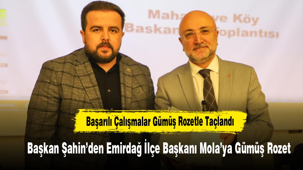 AK Parti Afyonkarahisar İl Başkanı Av. Turgay Şahin, teşkilat hedeflerinin üzerine çıkan Emirdağ İlçe Başkanı Emrah Mola’yı örnek çalışmaları nedeniyle ödüllendirdi. Şahin, üyelik çalışmalarında gösterdiği özveri ve gayret için Mola’ya isme özel gümüş AK Parti rozeti takdim etti.