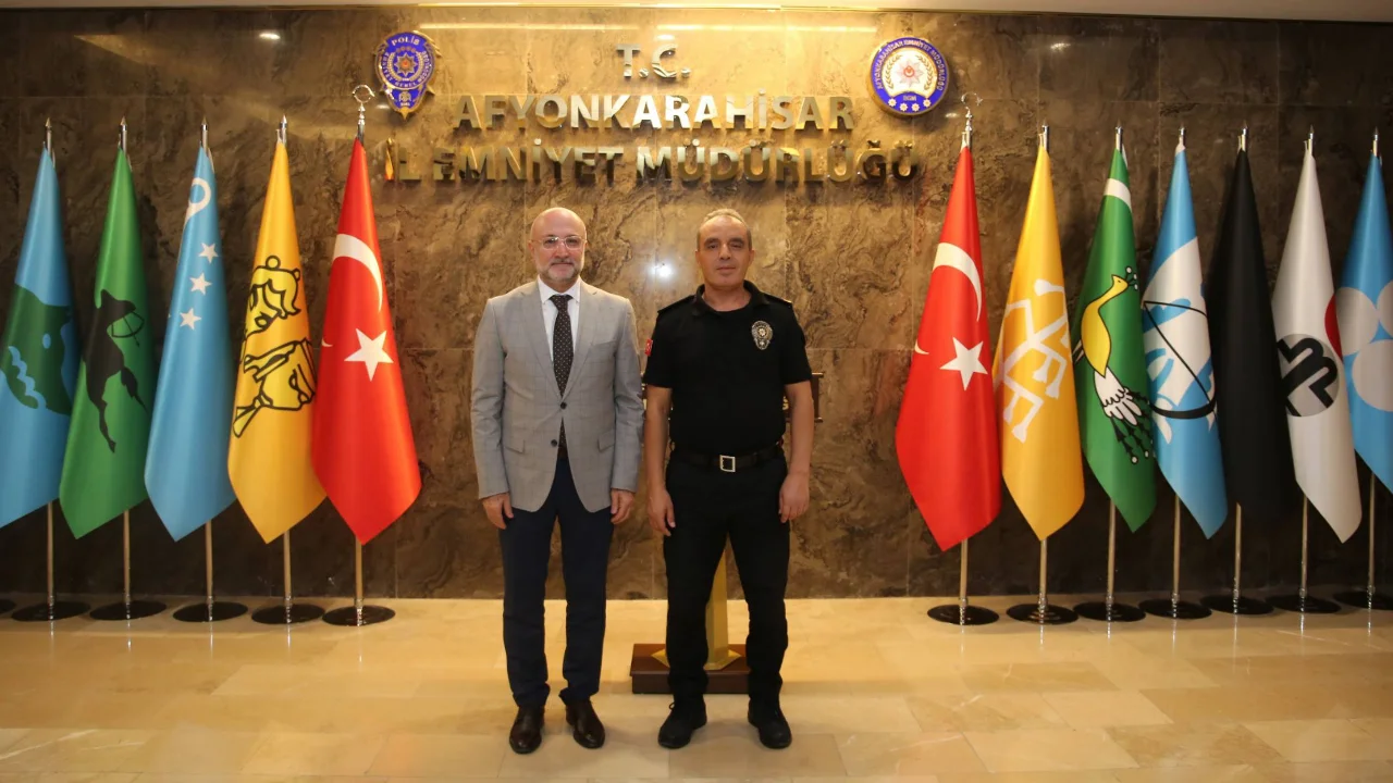 AK Parti Afyonkarahisar İl Başkanı Av. Turgay Şahin, İl Başkan Yardımcısı Av. Onur Çelik ile birlikte İl Emniyet Müdürü Ahmet Birtan Erol’u makamında ziyaret etti.