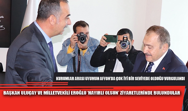 Uluçay: “Afyonkarahisar’da demokrasilerin gereği olarak seçimle yeniden göreve gelen Hüsnü bey, Meclis Başkanı Mustafa Çelikten’i ziyaret ettik ve hayırlı olsun dileklerinde bulunduk. Tabii bununla birlikte Afyonkarahisar Ticaret Borsası Başkanımız Sayın Mehmet Mühsürler’i ve yeni seçilen Meclis Başkanı Ali Rıza Gürakar'ı tebrik ettik. Son olarak Pancar Kooperatifinin 42. Olağan Genel Kurulu sonrası Kooperatif Başkanı İbrahim Eroğlu'nu ziyaret ettik. Bu kurumlarımız bu şehrin en önemli dinamiklerindendir. Tarımın ve ticaretin merkezi olan Afyonkarahisar da AK Parti olarak kamu yararına olan bütün taleplere destek veriyor ve yanlarında olduğumuzu ifade etmek istiyorum” dedi.
