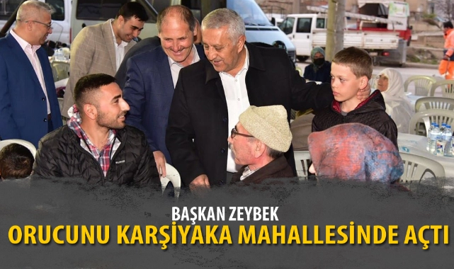 Belediye Başkanı Mehmet Zeybek hemşehrileri ile iftar sofrasında bir araya gelmeye devam ediyor. Mahalle iftarlarının durağı Karşıyaka oldu. Zeybek Başkan mahalle sakinleriyle iftar yemeğinde buluştu.