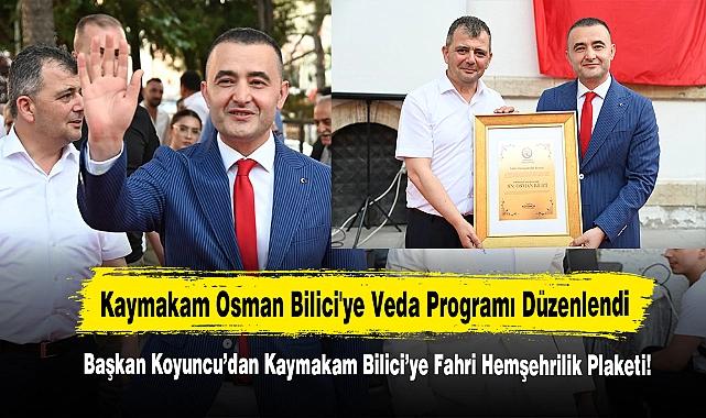 Programın sonunda, Belediye Başkanı Serkan Koyuncu tarafından hazırlanan fahri hemşehrilik plaketi, Kaymakam Osman Bilici'ye takdim edildi. Kaymakam Bilici'ye sunulan hediyelerin ardından çekilen hatıra fotoğrafı ile veda programı sona erdi.
