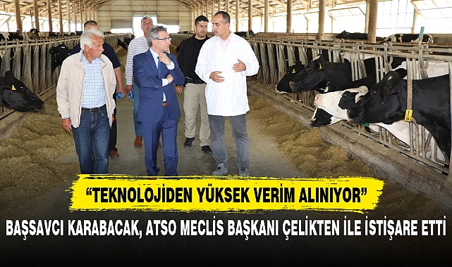 Planlanan bir proje hakkında, yerinde inceleme ve istişare gerçekleştiren Karabacak, Çelikten’den tarım ve hayvancılık uygulamaları, bu alanda Afyonkarahisar, Türkiye ve dünyadaki son gelişmeler hakkında bilgi aldı. ATSO Meclis Başkanı Mustafa Ali Çelikten, tarım ve hayvancılıkta teknolojiden yararlanılması ve çalışmaların yakından takip edilmesi sayesinde yüksek verim alındığını vurguladı. Afyonkarahisar Cumhuriyet Başsavcısı Fatih Karabacak, görüş alışverişi dolayısıyla ATSO Meclis Başkanı Mustafa Ali Çelikten’e teşekkür etti. >>Hüseyin ER