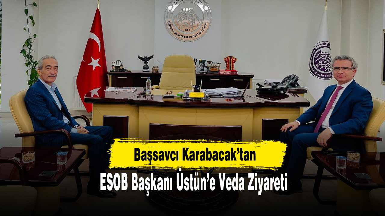 Yargıtay Cumhuriyet Başsavcılığı görevine atanan Afyonkarahisar Cumhuriyet Başsavcısı Fatih Karabacak, Afyonkarahisar Esnaf ve Sanatkarlar Odaları Birliği (ESOB) Başkanı Cengiz Üstün’e veda ziyaretinde bulundu.