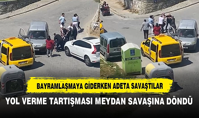 Aydın’ın Kuşadası ilçesi’nde birbirlerine yol vermediği ileri sürülen sürücüler ve yakınları önce tartıştı daha sonra tekme tokat kavga ettiler. Bayramlaşmaya giderken adeta meydan savaşına tutuşan tarafların öfkesi kameralara böyle yansıdı.