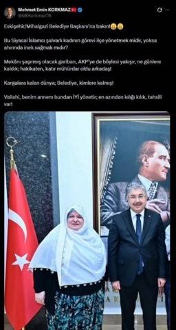Mehmet Emin Korkmaz’ın sosyal medya platformu X üzerinden yaptığı paylaşımda, Mihalgazi Belediye Başkanı Zeynep Güneş’i giyim tarzı üzerinden hedef aldığı ifadeler kullandığı öğrenildi. Paylaşım kısa sürede sosyal medyada geniş yankı uyandırırken, çok sayıda kullanıcı söz konusu ifadeleri sert şekilde eleştirdi.