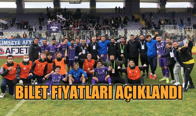 Buna göre; Maraton 10 TL., Kale Arkası 5 TL, VIP A ve B ise 75 TL. olarak belirlendi. Şampiyonluk yolunda ilerleyen Afjet Afyonspor ile Çorum FK arasında oynanacak olan karşılaşmanın biletleri ise dün satışa çıktı ve maç gününe kadar Saat: 13.00-17.00 arası Zafer 03 Kafe’den temin edilebilecek.