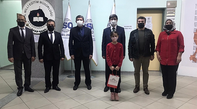 İl Milli Eğitim Müdürü Metin Yalçın; "Öğrencilerimizi başarılarından dolayı tebrik ediyorum. Uluslararası bir yarışmada ilimize ve ülkemize bu gururu yaşatan öğrencilerimize, öğretmenlerine, okul idarecisi ve velilerine de teşekkür ediyor, başarılarının devamını diliyorum." dedi. Ziyaret, İl Milli Eğitim Müdürü Metin Yalçın'ın öğrenciyi altınla ödüllendirmesi ve hatıra fotoğrafı çektirmesi ile son buldu. >>TÜRKELİ