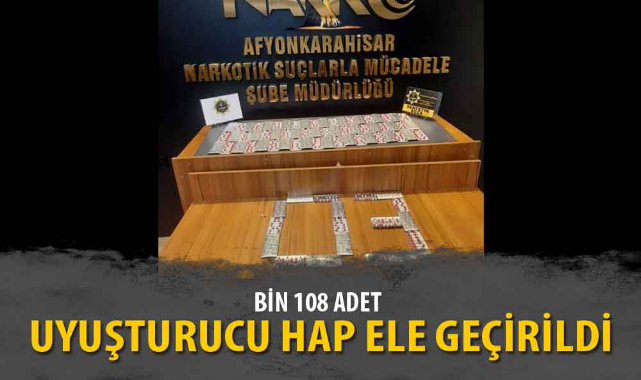 Edinilen bilgilere göre, Afyonkarahisar-Konya karayolunda denetim yapan polis, şüphe üzerine bir aracı durdurarak arama yaptı. Aramada bin 108 adet sentetik ecza diye adlandırılan uyuşturucu hap ele geçirildi. Olayın ardından Y.Ö. isimli şahsı gözaltına alındı. >>İHA