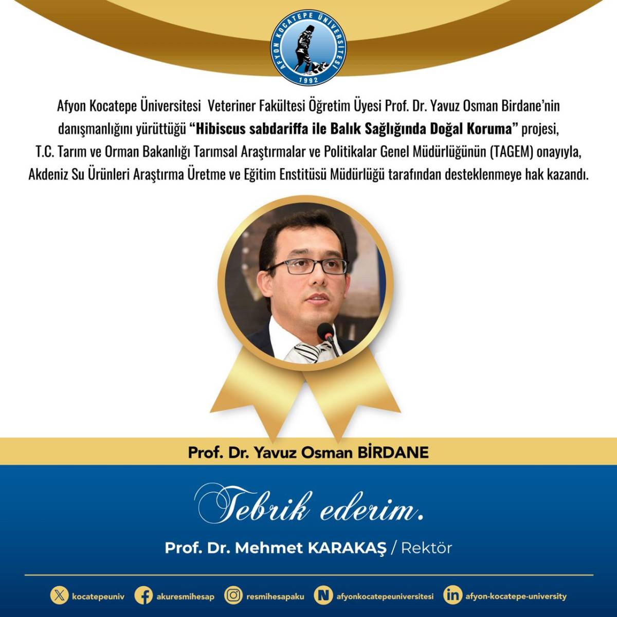 Afyon Kocatepe Üniversitesi, Tekirdağ Namık Kemal Üniversitesi, Akdeniz Üniversitesi, Batı Akdeniz Tarımsal Araştırma Enstitüsü (BATEM) ve Bornova Veteriner Kontrol Enstitüsü’nün (BVKAE) yer aldığı projede; perasetik asit ve kloramin T gibi dezenfektanların balıklarda oluşturabileceği olası oksidatif stres etkilerine karşı nar çiçeği (hibiscus sabdariffa) bitkisinin koruyucu etkisi araştırılıyor.