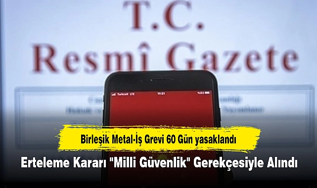 "Birleşik Metal-İş Sendikası tarafından alınmış olan grev kararlarının, milli güvenliği bozucu nitelikte görüldüğünden altmış gün süreyle ertelenmesine, 6356 sayılı Sendikalar ve Toplu İş Sözleşmesi Kanununun 63'üncü maddesi gereğince karar verilmiştir."