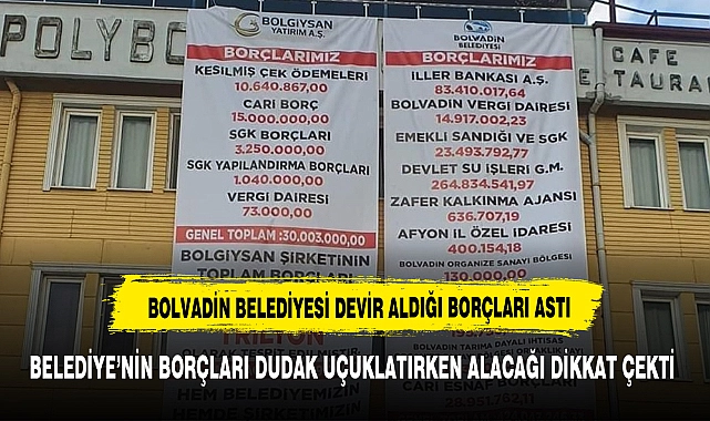 MHP'den yeni seçilen Bolvadin Belediye Başkanı Derviş Aynacı, göreve başladıktan sonra ilk icraatını gerçekleştirdi. Önceki yönetimin bıraktığı borç durumunu Bolvadin halkıyla paylaşmak için dikkat çeken bir adım attı. Aynacı, belediyenin devraldığı 30 trilyonluk borcu, belediye binası önüne asılan dev bir pankartla halka duyurdu.Pankartta, "Bolvadin Belediyesi'nin 424 trilyon borcu varken kasasında hiç para bulunmamaktadır." ifadesi yer aldı. Bu durum, geçmiş yönetimin finansal yönetimindeki sorunları gün yüzüne çıkardı ve Bolvadin halkı arasında endişe yarattı.Başkan Aynacı, vatandaşlara şeffaf bir yönetim anlayışıyla hareket edeceğini ve sorunları açıkça paylaşarak çözüm arayacağını belirtti. Halkın desteğiyle, belediyenin ekonomik durumunu düzeltmek için çaba sarf edeceğini vurguladı.