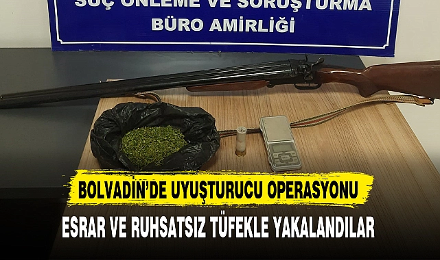Olay, Bolvadin ilçe merkezinde meydana geldi. Edinilen bilgilere göre, bir araçla uyuşturucu satışı yapıldığı bilgisini alan polis ekipleri söz konusu aracı takibe alıp ardından durdurdu. Araçta arama yapan ekipler 48 gram esrar, hassas terazi, ruhsatsız tüfek ve bu tüfeğe ait kartuşlar ele geçirdi. Olayın ardından sürücü R.Ö., ile araçta bulunan O.Ö., gözaltına alındı. Yapılan sorgulamalarda sürücü R.Ö.’nün ehliyetinin olmadığı da ortaya çıkarken, şahısların işlemlerinin devam ettiği bildirildi.