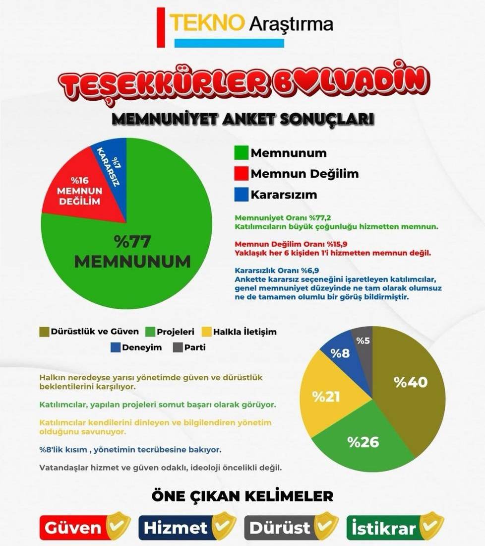 Yaklaşık her 6 kişiden 1’i hizmetlerden memnun olmadığını belirtse de genel tablo, Bolvadin Belediyesi’ne duyulan güvenin oldukça yüksek olduğunu ortaya koydu.