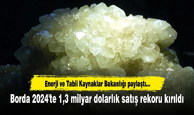 Bakanlığın infografikli paylaşımında, "Yüzde 73’lük rezerv payıyla dünyada lider olduğumuz borda, 2024'te 2,5 milyon ton bor ürünleri satışı karşılığında yüzde 97'si ihracat olmak üzere 1,3 milyar dolarlık satış gerçekleştirdik." ifadesi kullanıldı.