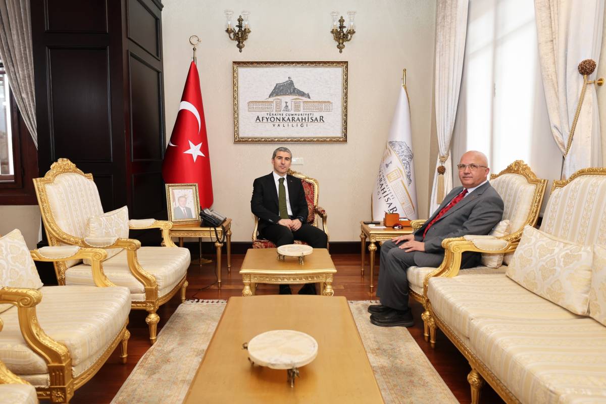 Afyonkarahisar’a yeni atanan Vali Dr. Naci Aktaş, ‘Hayırlı Olsun’ ziyaretinde bulunan konuklarına kabule devam ediyor. Kentteki bir çok siyasi ve protokol üyesinin ziyaretlerde bulunduğu Vali Aktaş, misafirlerini bir bir makamında kabul ediyor. Vali Aktaş, Afyonkarahisar Ticaret Borsası Yönetim Kurulu Başkanı Mehmet Mühsürler'i, Borsa Meclis Başkanı Ali Rıza Gürakar’ı ve Borsa Yönetim Kurulu Üyelerini makamında konuk etti.