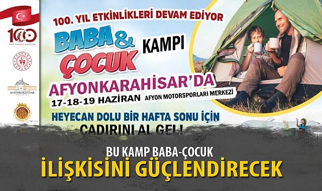 “Baba-çocuk” kampında çocuğunuzla birlikte heyecan dolu bir hafta sonu geçireceksiniz. Onun takım arkadaşı olacak, onunla sevinecek, onunla birlikte bir hedefe ulaşmanın tadına varacaksınız. Etkinlik kapsamında "Çevre Müfettişleri" (Belediye Şehir Tiyatrosu) adlı Eğitici Müzikal çocuk oyunu ile gişe rekorları kıran efsane film "Babam Ve Oğlum" (Çağan Irmak) sizler için ücretsiz sahnede olacak. Düzenlenecek bu kampta baba-çocuk ilişkisini güçlendirmek, aileler arası sosyal ilişkileri, dostlukların pekişmesini sağlamak ve başta Gazi Mustafa Kemal Atatürk olmak üzere Büyük Taarruza katılıp vatan uğruna son nefesine kadar mücadele etmiş bütün kahramanları 1 asır sonra yeniden anmak ve Afyonkarahisar’ın düşman işgalinden kurtuluşunu kutlamak amaçlanıyor. Katılım ücretsiz olup, kampa katılacak çocuğun en az 6, en fazla 14 yaşında olması gerekiyor. >>YASİN AY