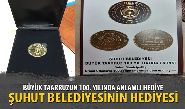 Büyük Taarruzun 100. Yılı kapsamında Şuhut belediye tarafından bastırılan hatıra parası Türkeli Gazetesi İmtiyaz Sahibi Önder Artuk’a takdim edildi.