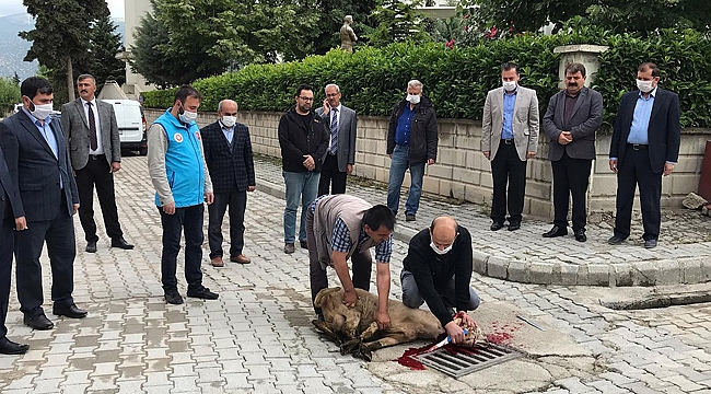 Yeni tip koronavirüs (Kovid-19) tedbirleri kapsamında 16 Mart'ta cemaatle vakit ve cuma namazlarının kılınmasına ara verilen Ulu Cami önünde, Diyanet Vakfı Dinar Şubesince, şükür kurbanı kesilerek dua edildi.