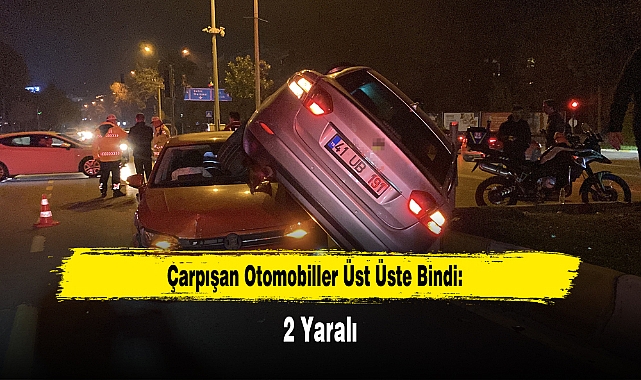 Aydın'ın Efeler ilçesinde çarpışan otomobillerden biri diğerinin üstüne çıkarken, kazada 2 kişi yaralandı.