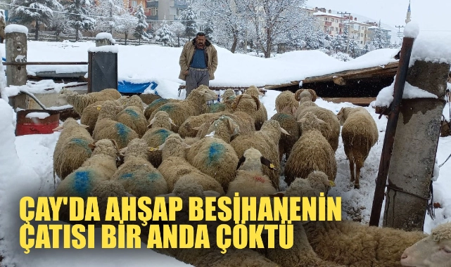 Çay'da ahşap besihanenin çatısı bir anda çöktü